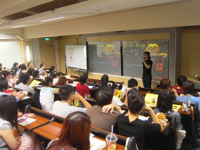 此外,蘇通達也為同學解說當今音樂製作的流程,並以最新操刀的金枝演社新戲「黃金海賊王」(http://piratesandformosa.blogspot.com/)為例,輔以樂曲片段,一步步介紹其為不同劇情與角色構思不同音樂曲風的創作歷程。