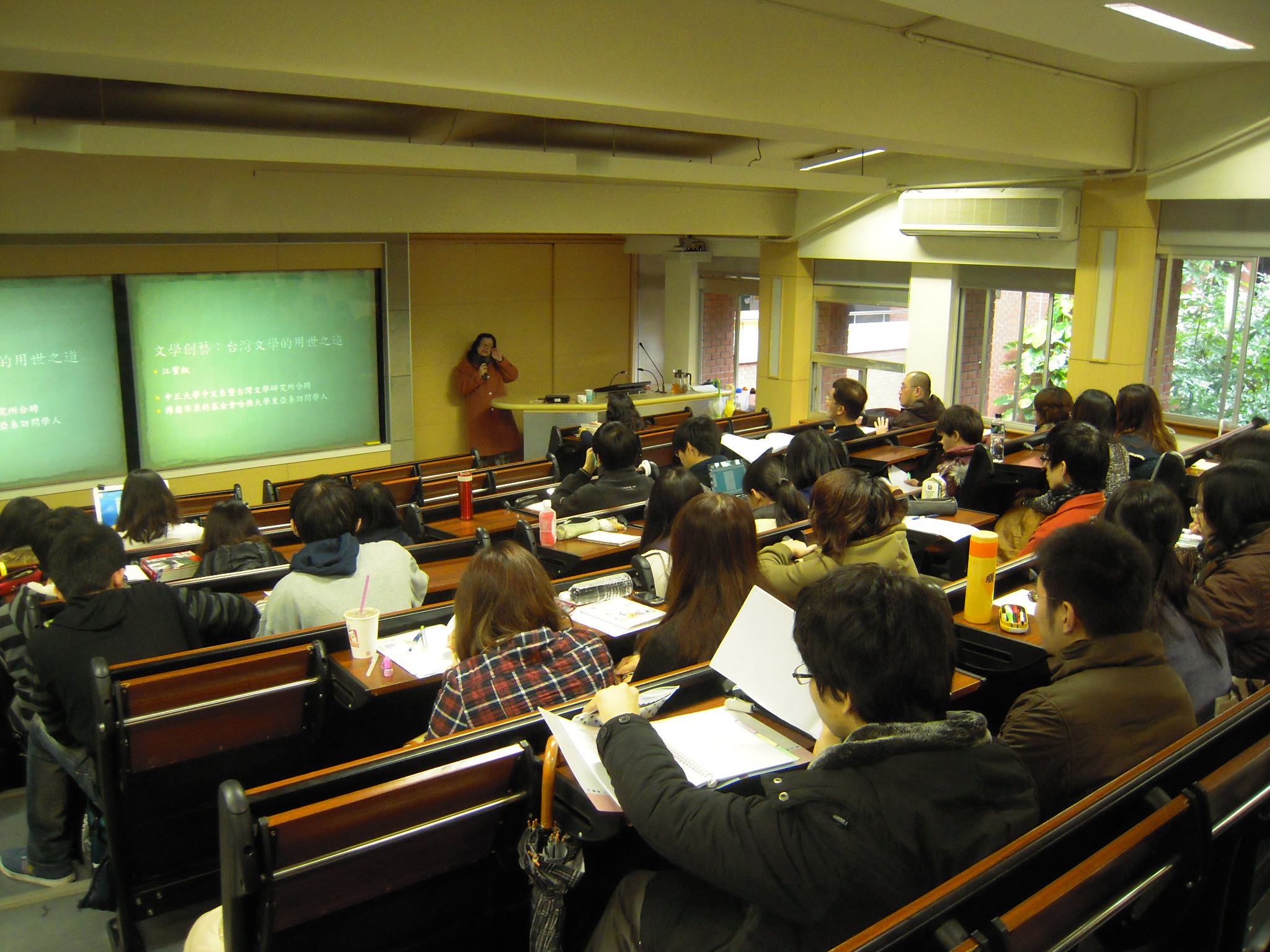 江寶釵老師為中正大學台文所所長及中文系教授,亦為傅爾布萊特哈佛大學訪問學人,資歷豐富,卻不忘出身台師大,這次重返母校演講便憶起求學時代的種種。江老師提及,早期學習中文就是為了用世、救世,同儕之間也常從所學之中探索如何經世致用,讓這個社會更好;曾幾何時文學研究成了學術高塔,被認為無用於世了呢?  江老師所帶領的中正台文所便展開一系列結合台灣文學與文創實務的計畫與課程,試圖打破這樣的迷思。在江老師的規劃藍圖裡,不論是詩文、影像、音像或各種數位媒材紀錄,都可與文學相結合,開創新路。