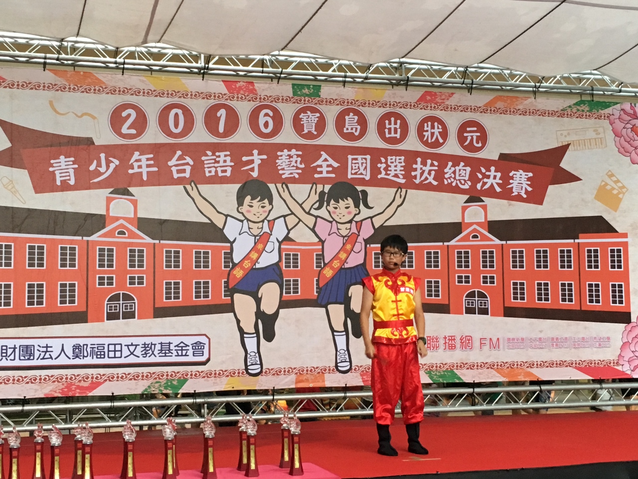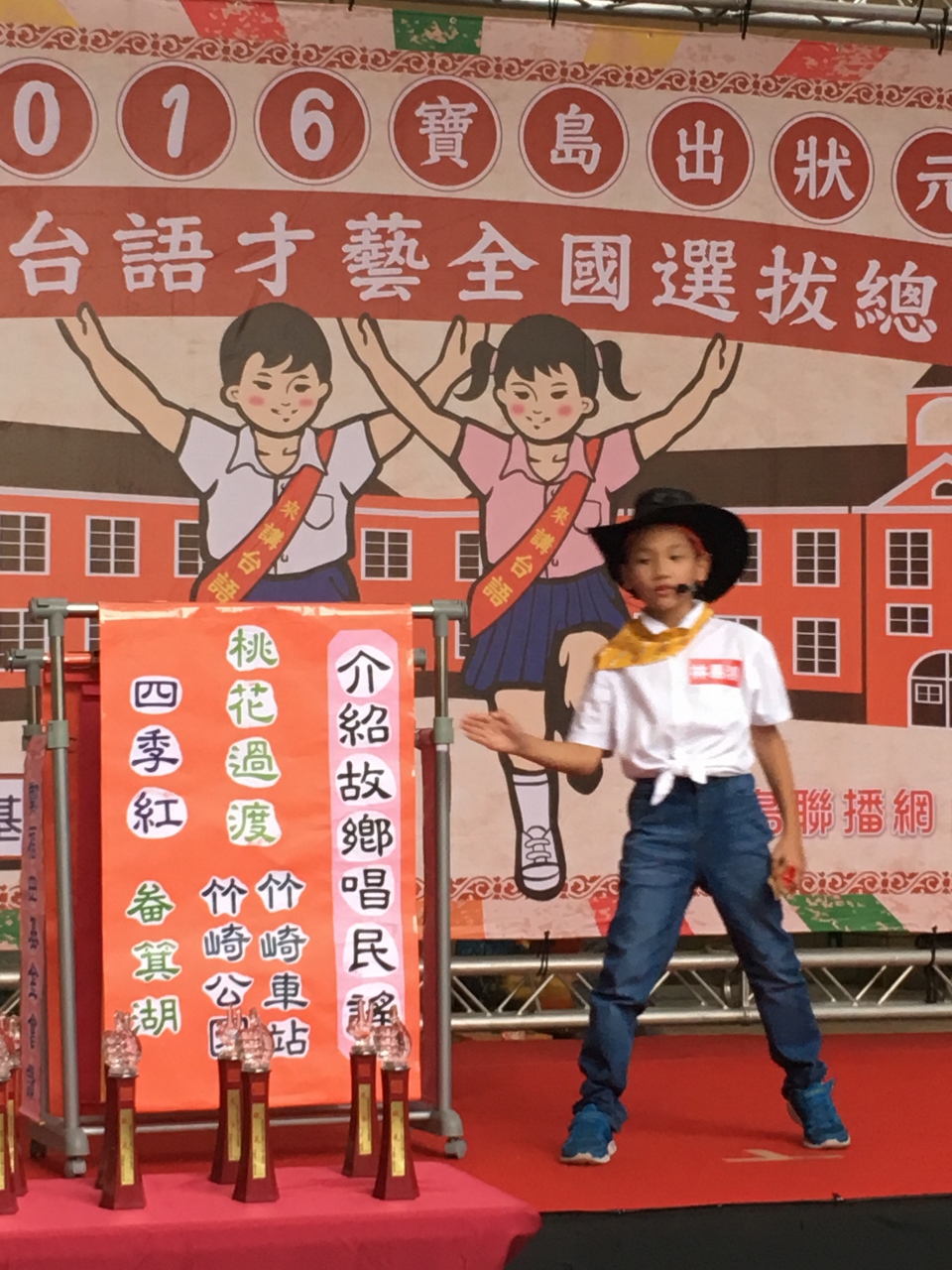 ↑來自台南開元國小的曾景脩,除了演唱"嘉慶君遊台灣",並唸了一段有趣的台灣童謠
