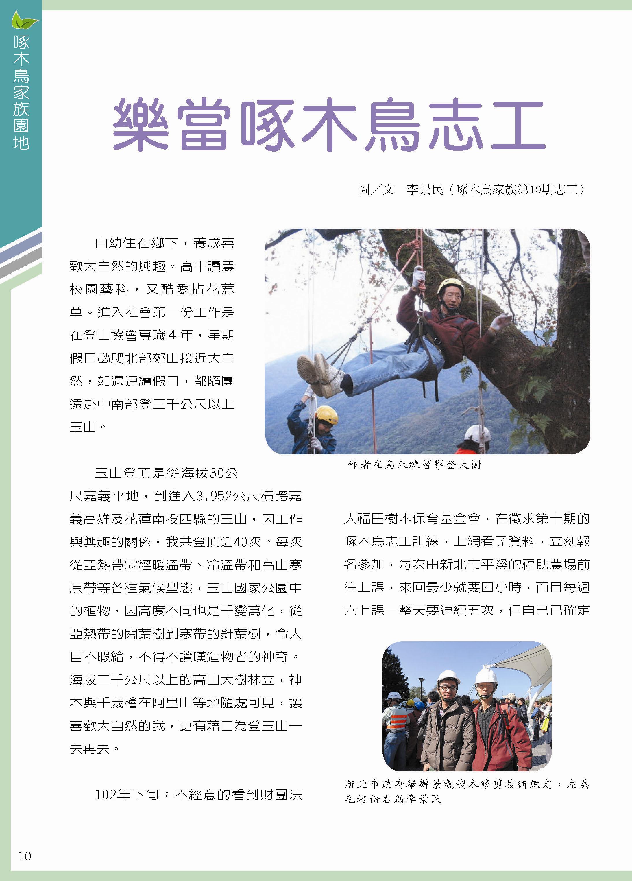 福田樹木保育季刊_2014年春季號「啄木鳥家族園地」