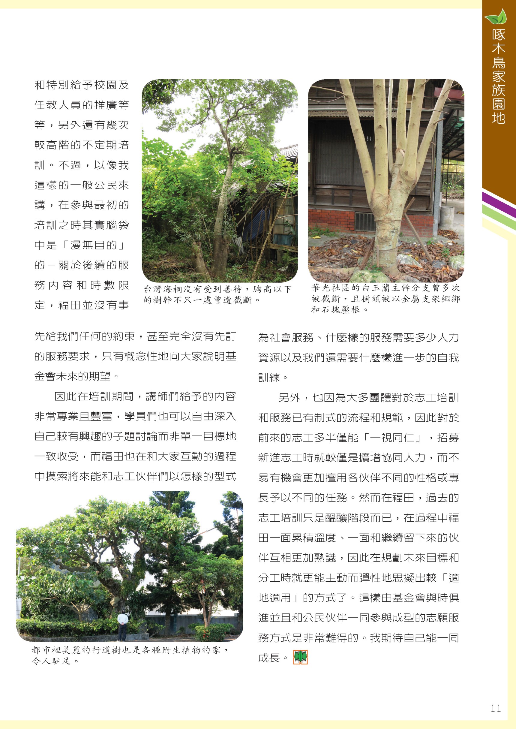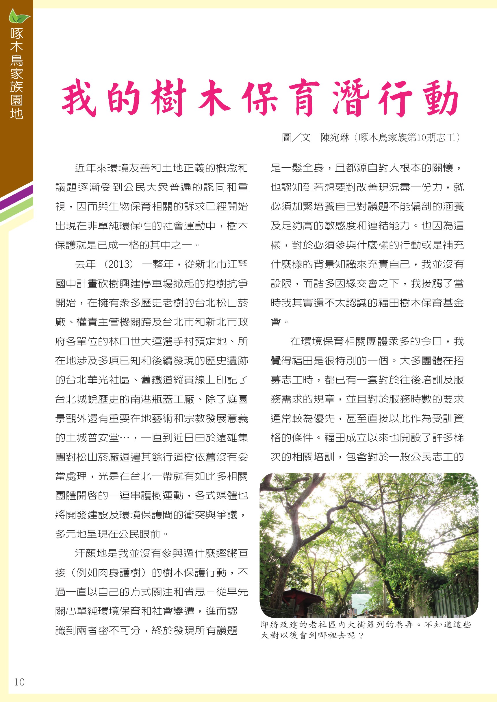 福田樹木保育季刊_2014年夏季號「啄木鳥家族園地」