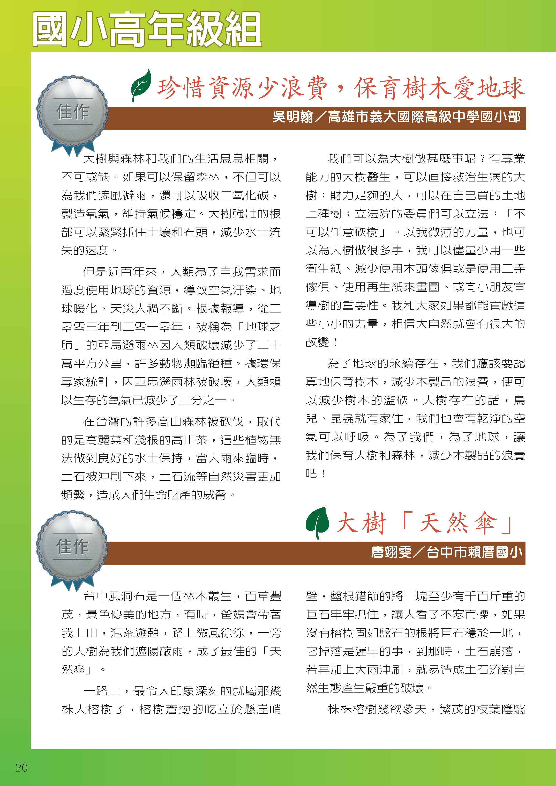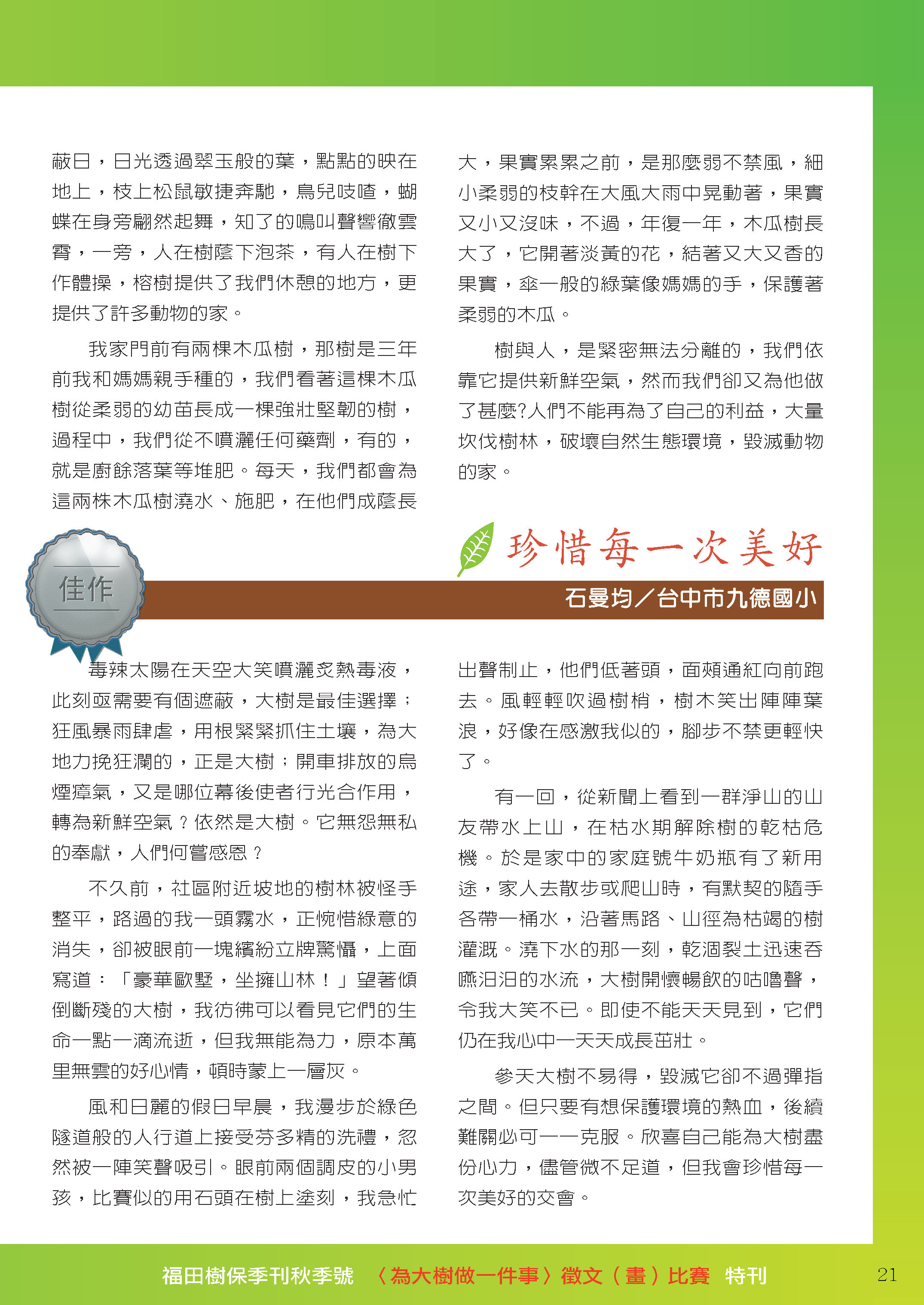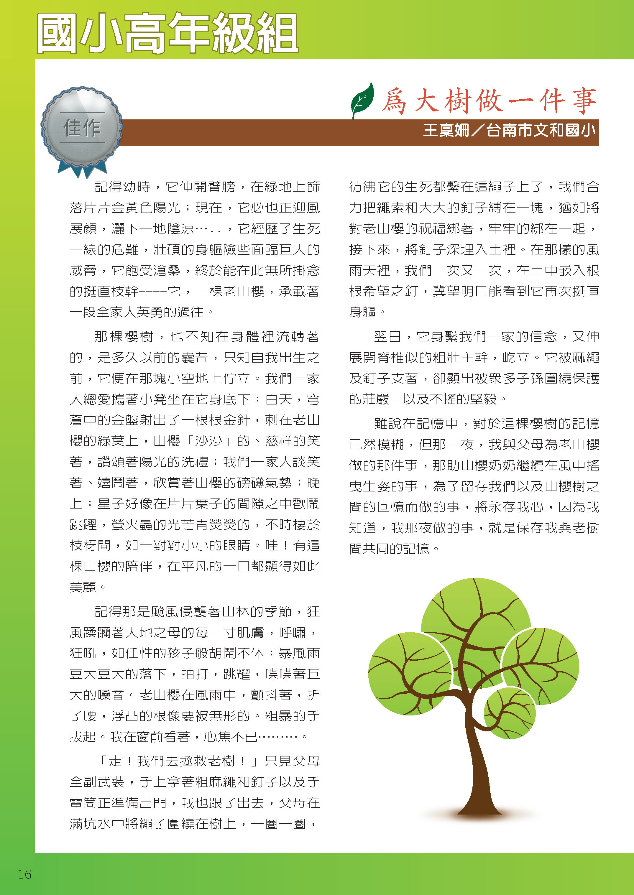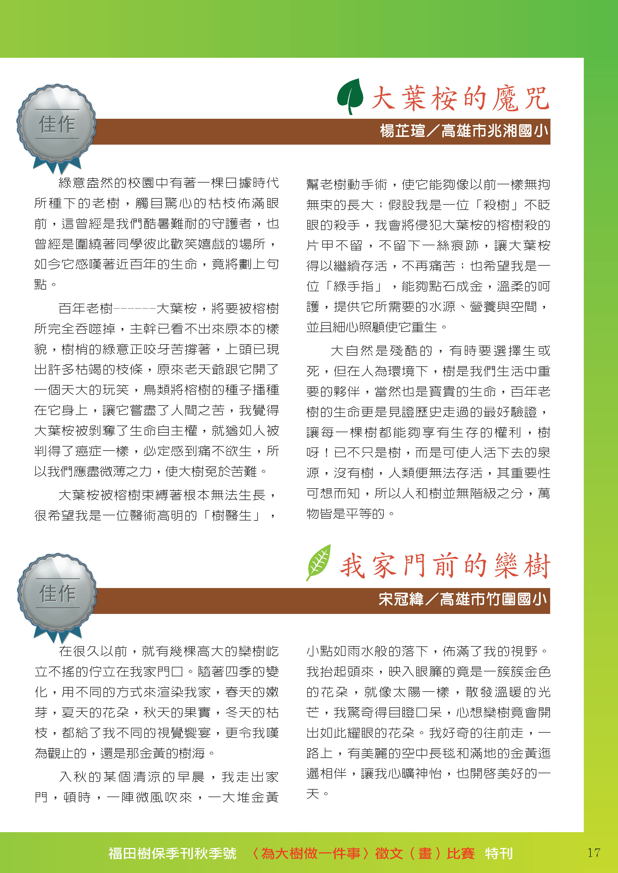 福田樹木保育季刊_2014年秋季號特刊「為大樹做一件事-高年級組作品」