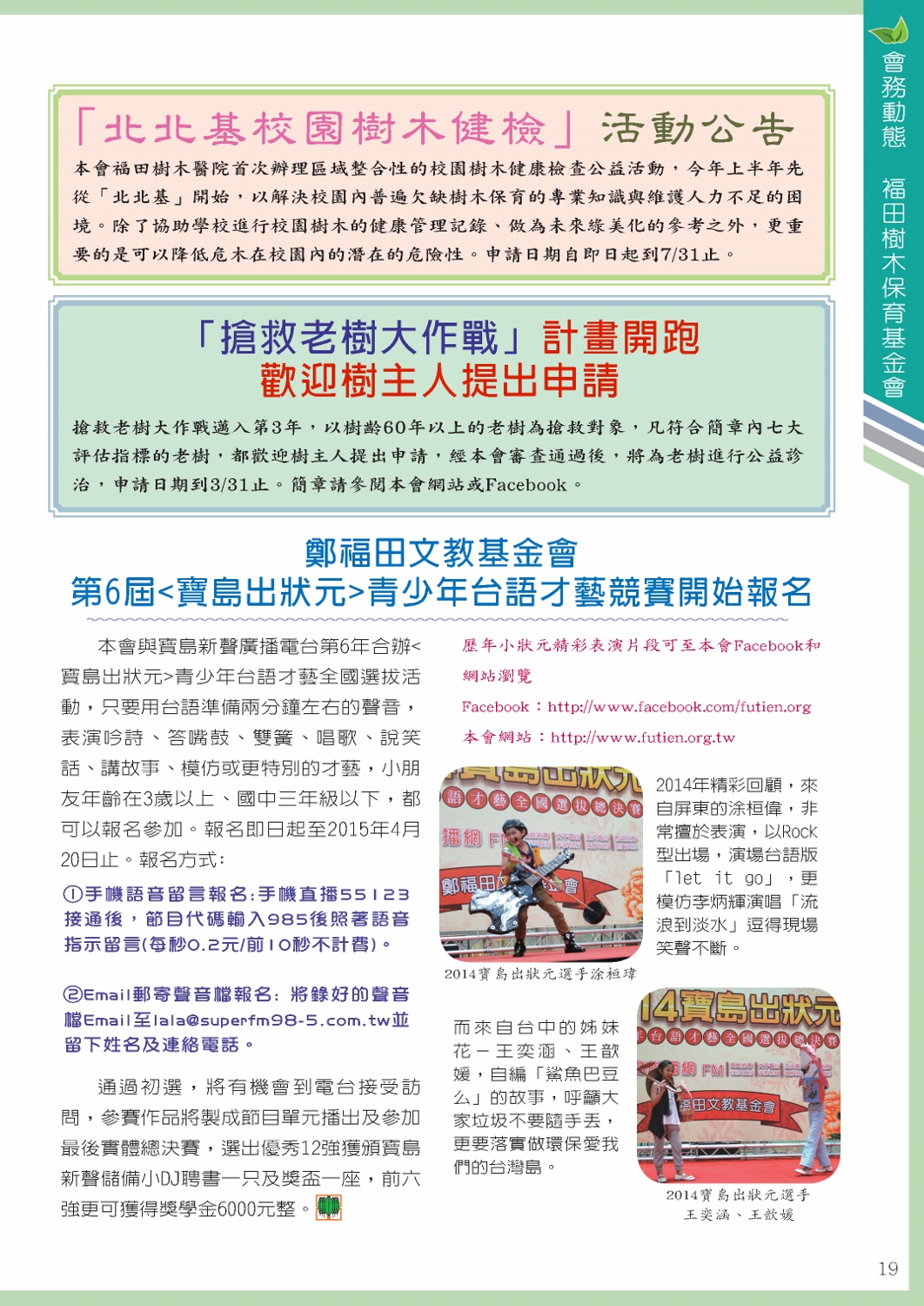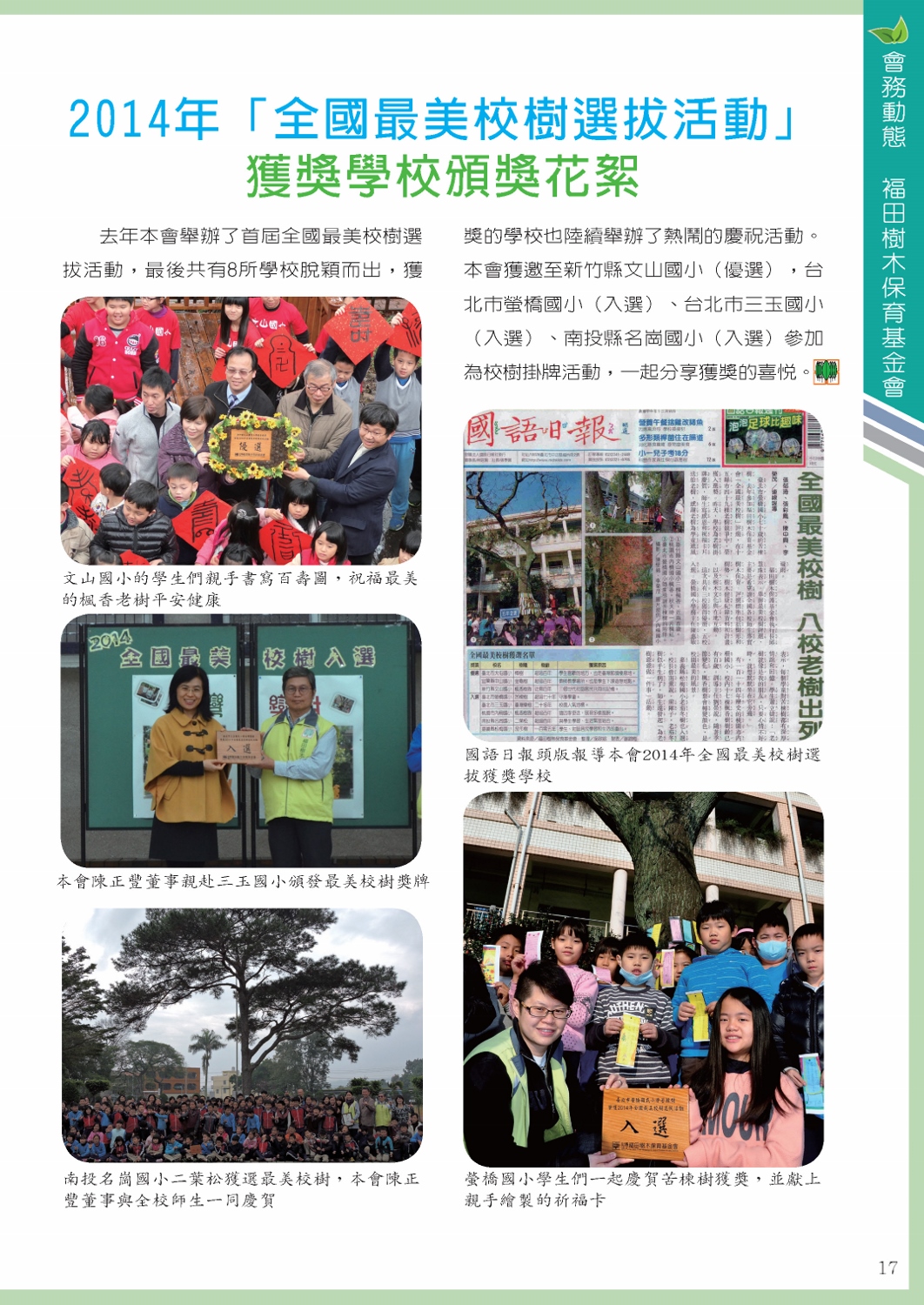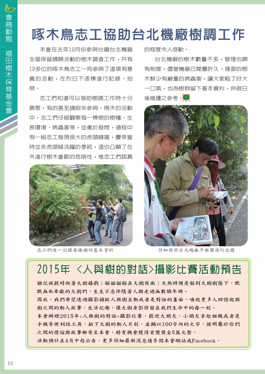 福田樹木保育季刊_2015年春季號「會務動態 / 福田樹木保育基金會」