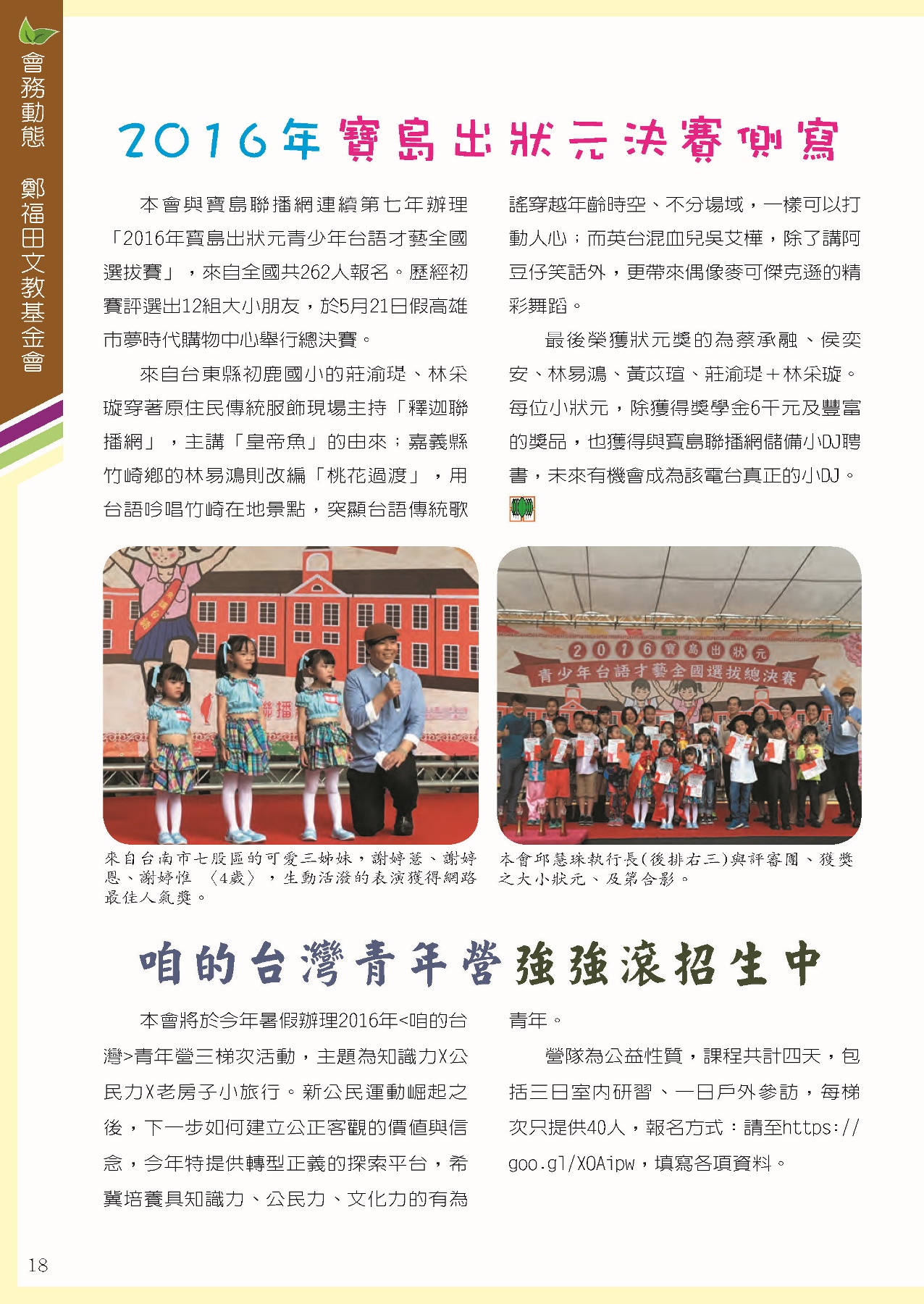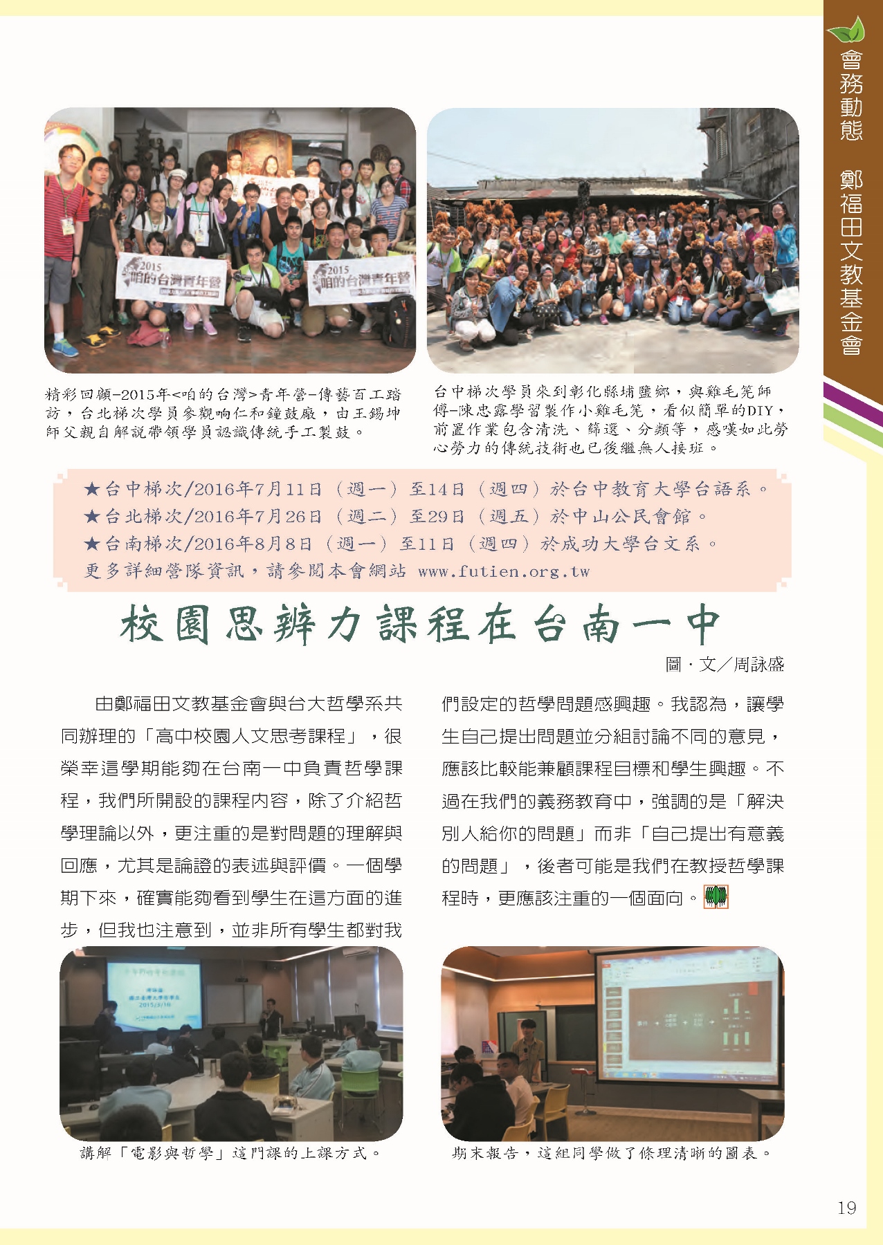 福田樹木保育季刊_2016年夏季號「會務動態 / 鄭福田文教基金會」