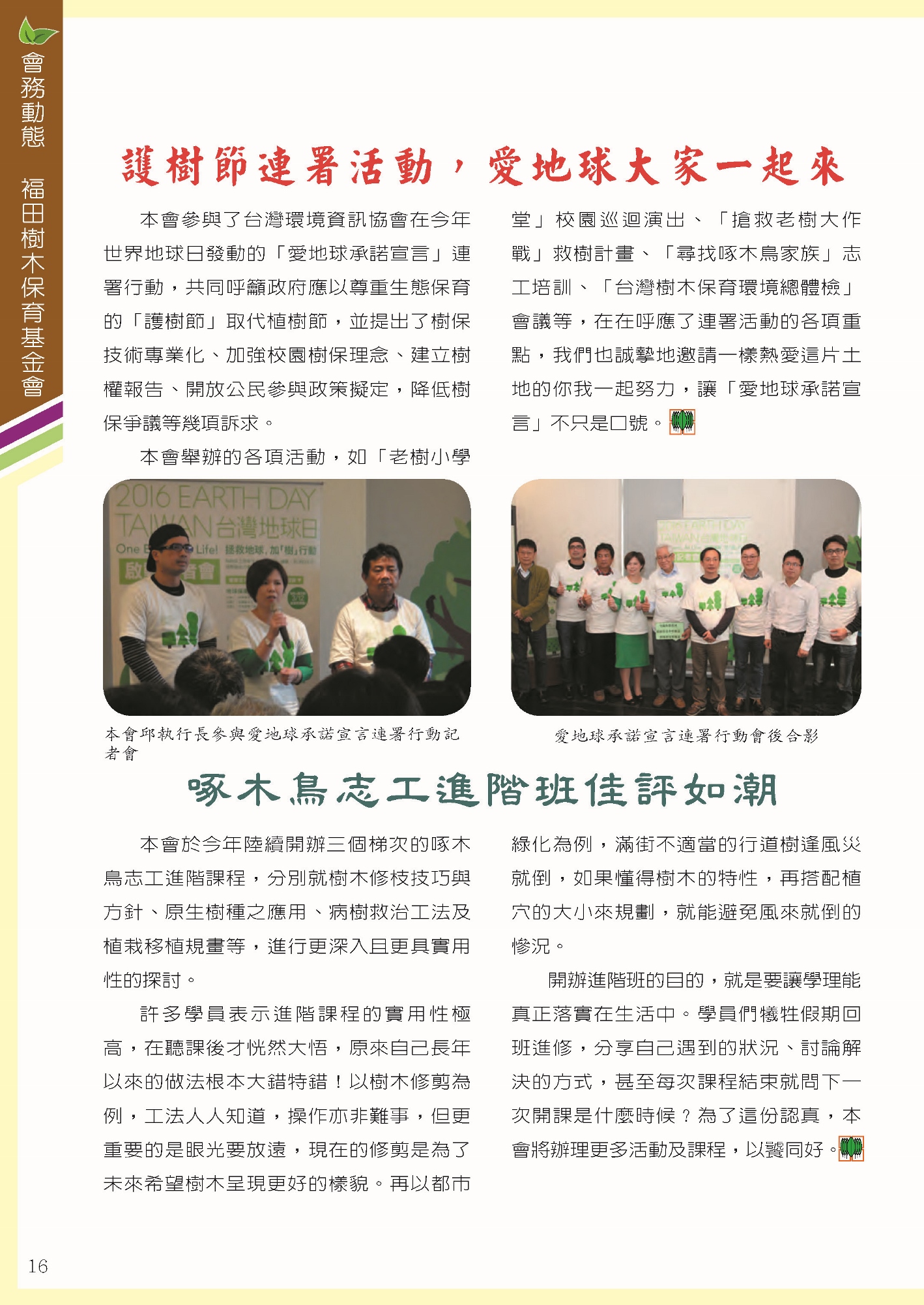 福田樹木保育季刊_2016年夏季號「會務動態 / 福田樹木保育基金會」