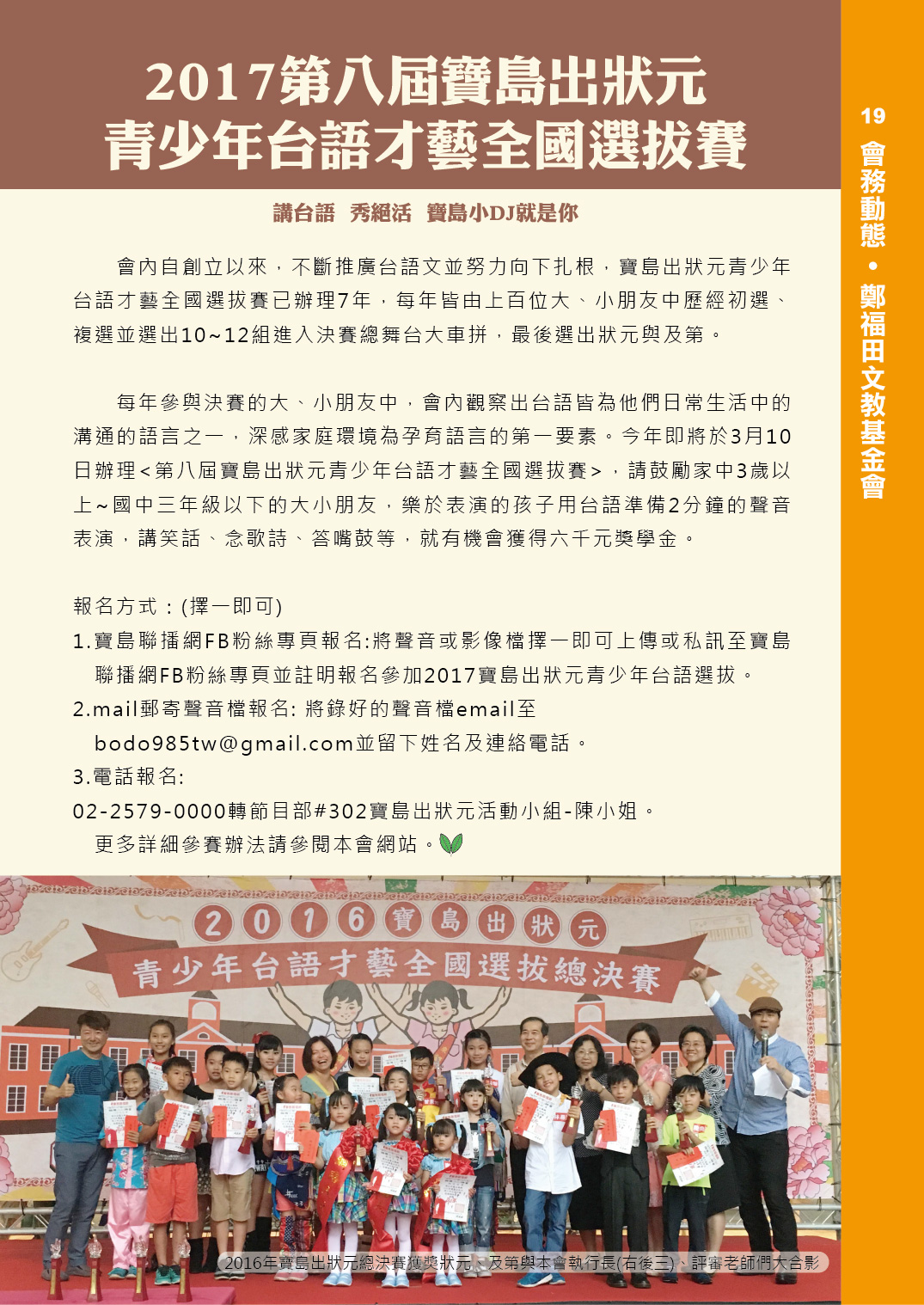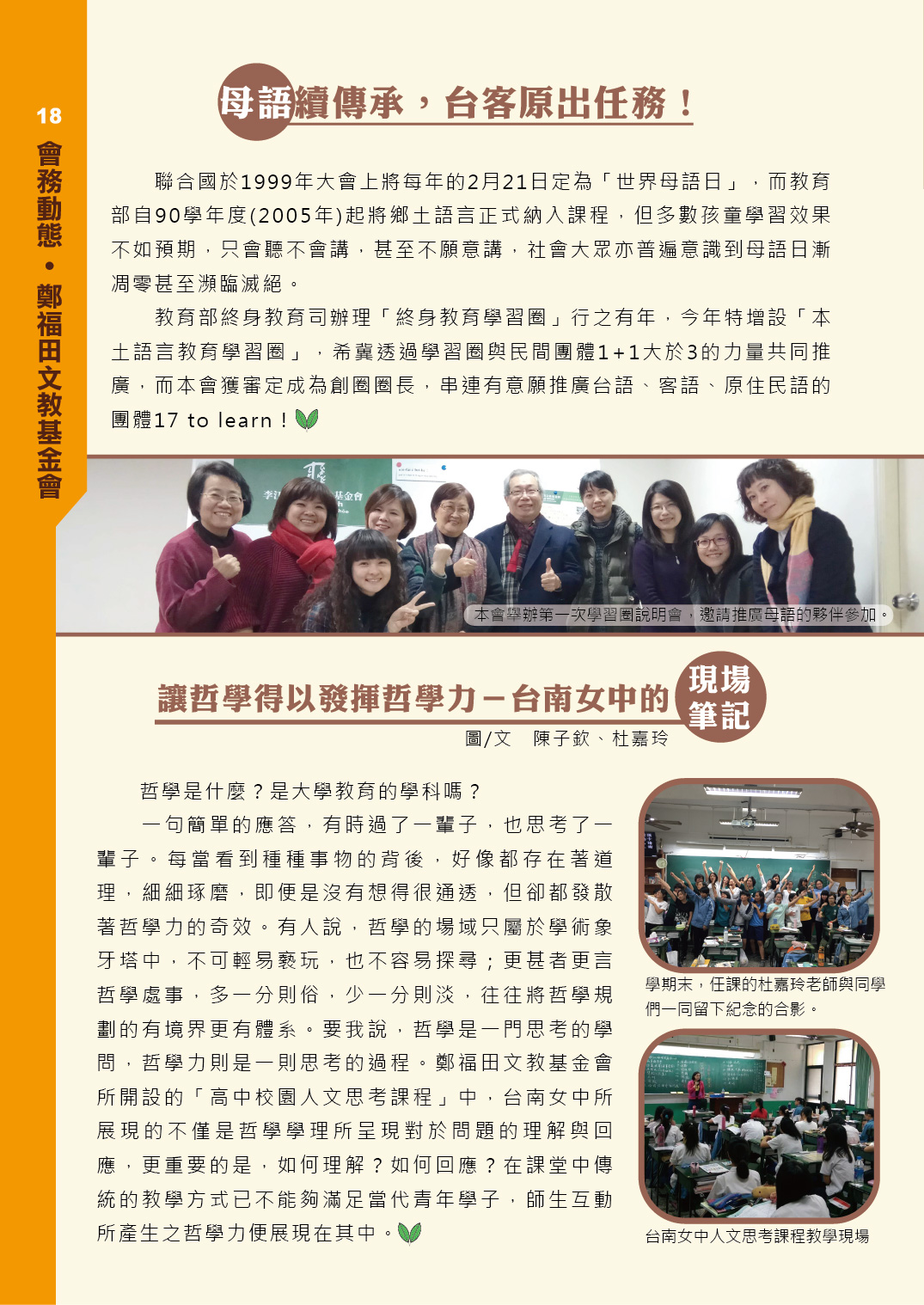 福田樹木保育季刊_2017年春季號「會務動態 / 鄭福田文教基金會」