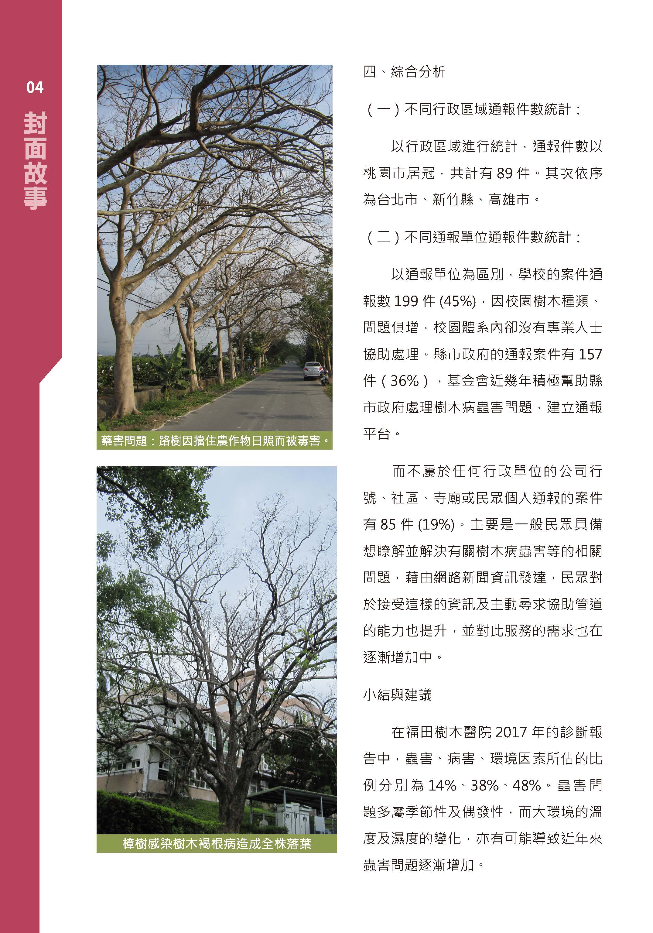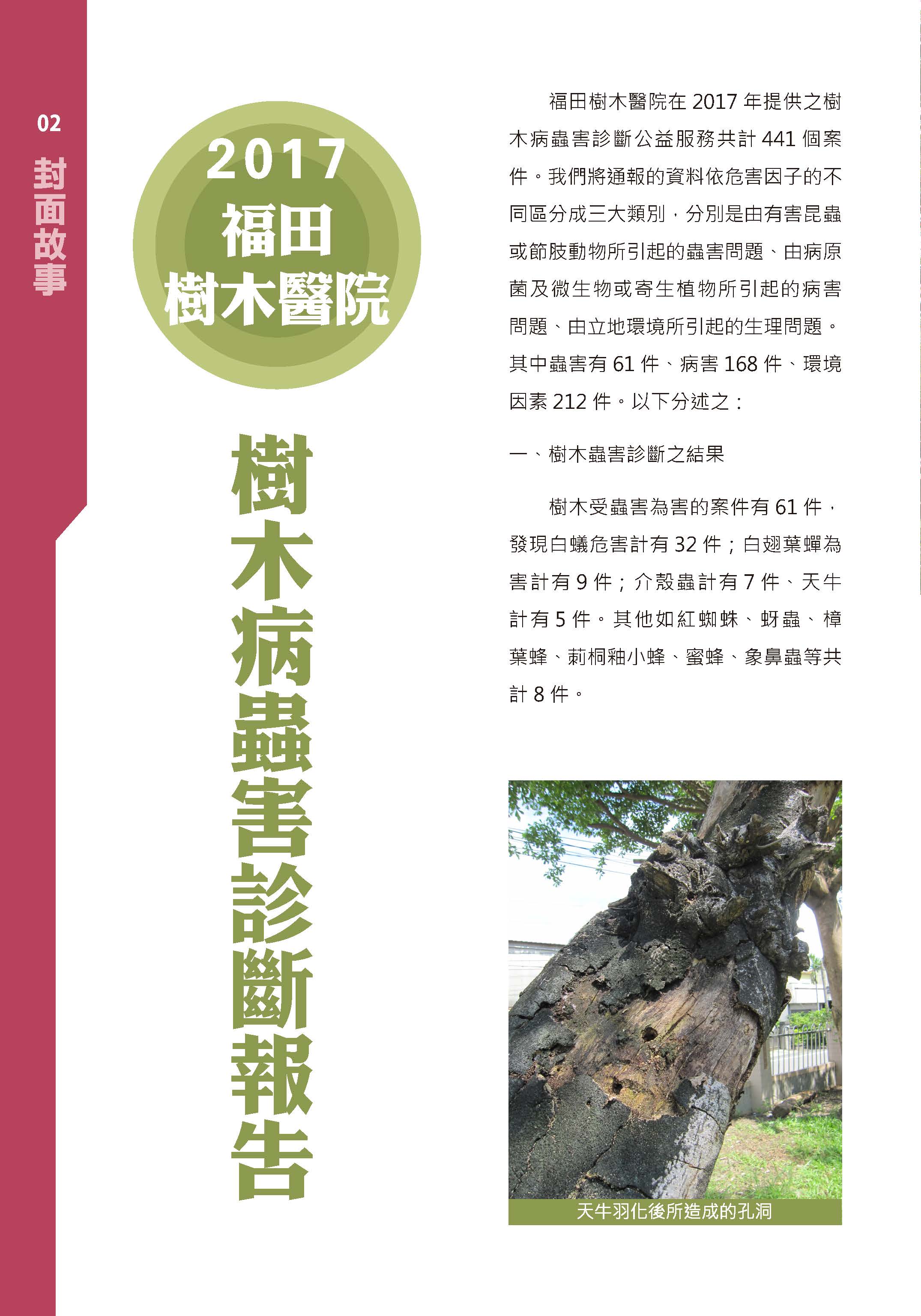 福田樹木保育季刊_2018年春季號「封面故事」_ 福田樹木醫院2017年樹木病蟲害診斷報告