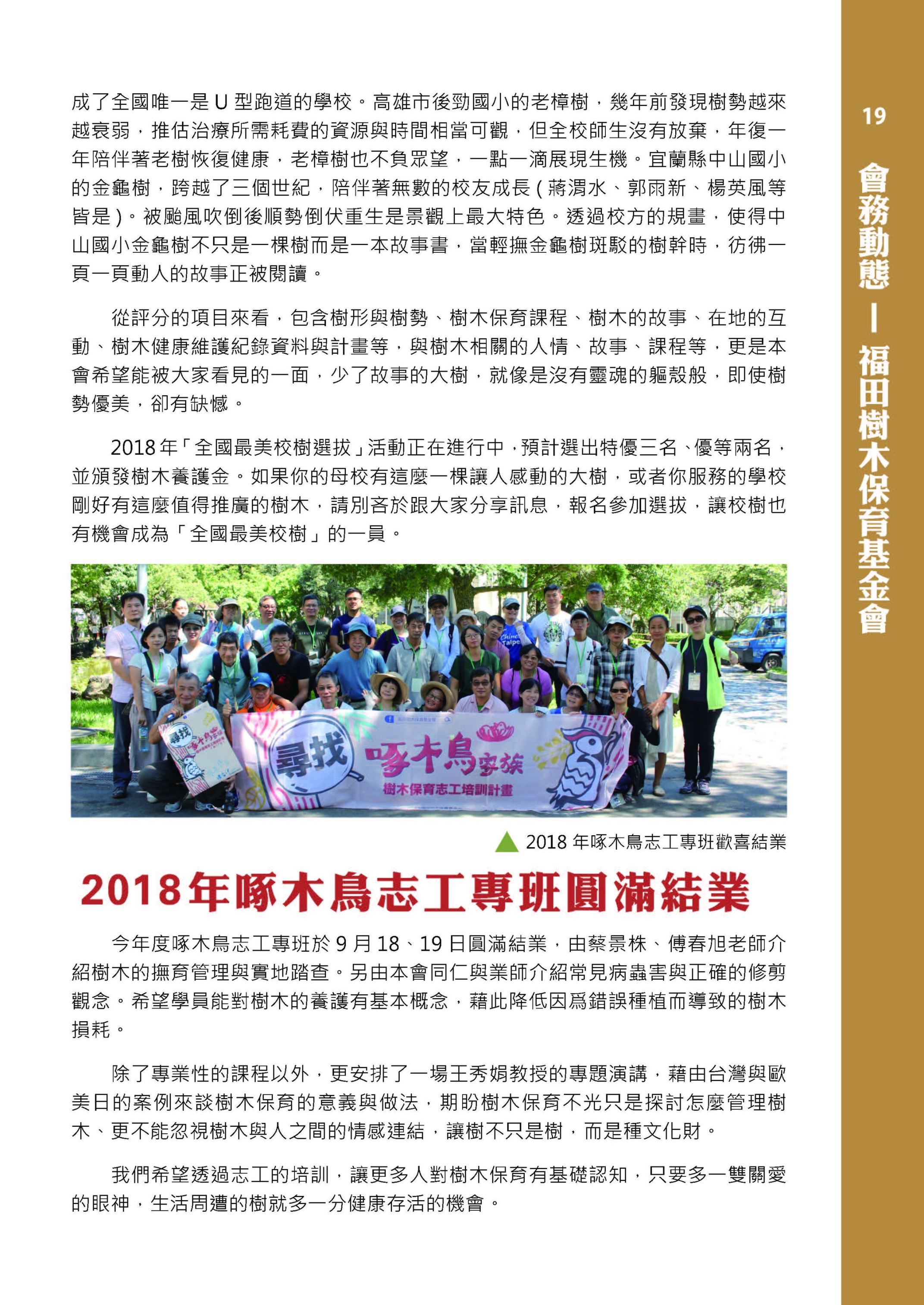 福田樹木保育季刊_2018年秋季號_搶救老樹大作戰成果專刊_「會務動態」