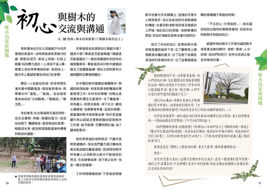 福田樹木保育季刊_2019年冬季號「啄木鳥家族園地」_ 「初心」 與樹木的交流與溝通